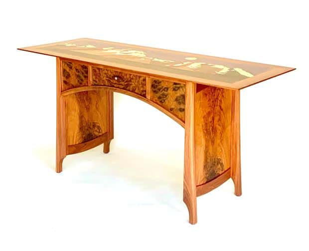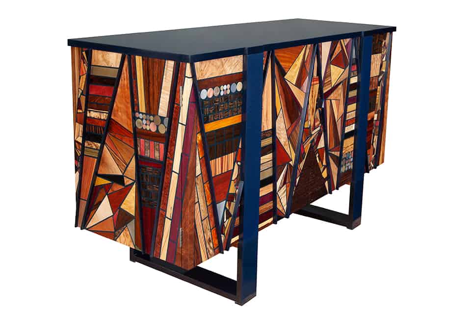 CHAIRish the art of one-of-a-kind furniture with these extraordinary pieces to lounge in and to love L to R, from Chris Martin Furniture of Colorado: Martini Chair, Burl oak, steel, leather, Afzelia burl, $5,800 to