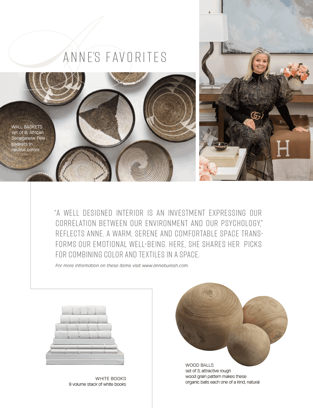 “I’ve dedicated my career to transforming homes into serene sanctuaries,” says Buresh. Her creative process is transparent. From the first meeting, budgets are discussed and presented with complete clarity. There are no hidden expenses or surprise overages. Next steps are clearly outlined so everyone is on the same page throughout the entire process.